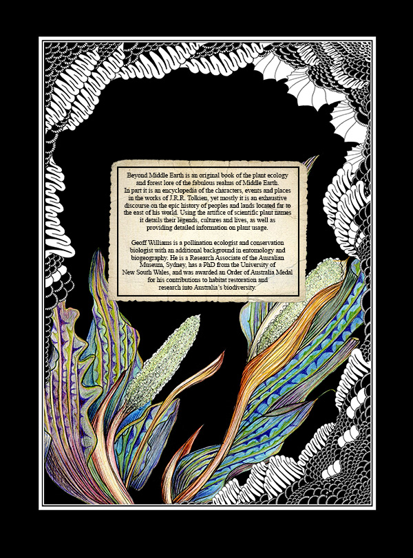 Beyond Middle Earth is a lavishly illustrated book of marvellous plants and their ecology, a forest lore and herb lore, a fictional history, a folk mythology, a set of epic sagas, and in part (but much the lesser of it) is an encyclopaedia to the characters, events and places in the works of J.R.R. Tolkien. But Beyond Middle Earth is original in concept, structure and detail, and quickly departs from his writings, establishing new landscapes, characters, time scales, histories and themes. Rather, Tolkien’s writing provides a partial and contextual backdrop, however, great care has been taken to keep very much to the inherent sense of place and moment that his works describe. The Preface and the Introduction to Beyond Middle Earth explain the book’s intent far more succinctly.